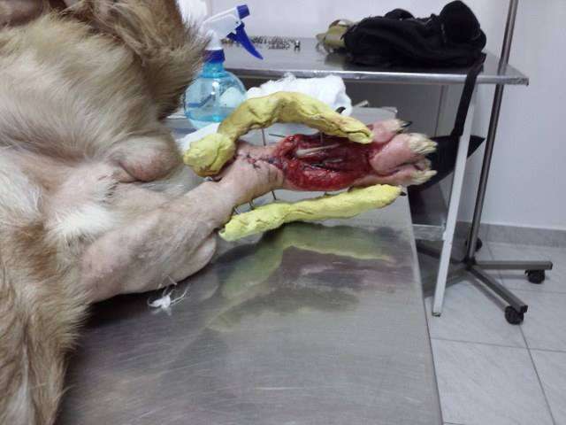 Martinel was operated. All is well, his back leg was saved by Dr. Levente and Roxi to whom we thank from our soul for the wonder done! From now on it follows a long recovery period, almost daily the bandage needs to be changed and he receives treatment in the morning and evening…..it is not easy for Martinel and for us either, but we’re all fighting so in the end all will be ok!