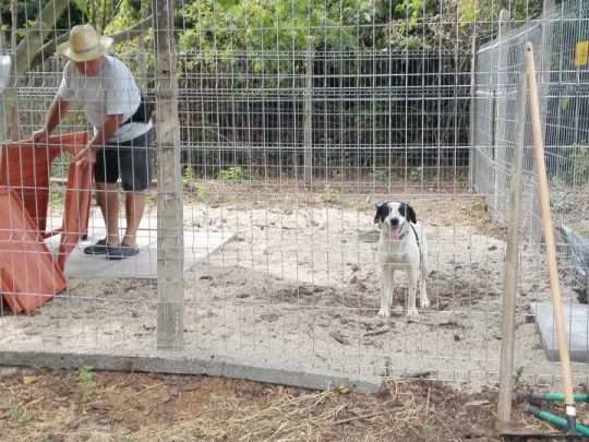 Time has passed and her pups have grown, and two of them are already with their new families. Arina is spayed, vaccinated and microchipped, in order to be ready for adoption, if anyone would like to offer her a home. It seems that no one does 🙁 and we are desperate! Arina has become very agile and we are faced with a difficult problem: she is able to jump out of any enclosure, and doesn’t stop till she’s out of the yard, beyond the gate. The last time we managed to find her , happily for her and ourselves, just before getting into trouble. There are many hunters in our area and they would not think twice before shooting her. In her heart she probably knows she needs a new home!