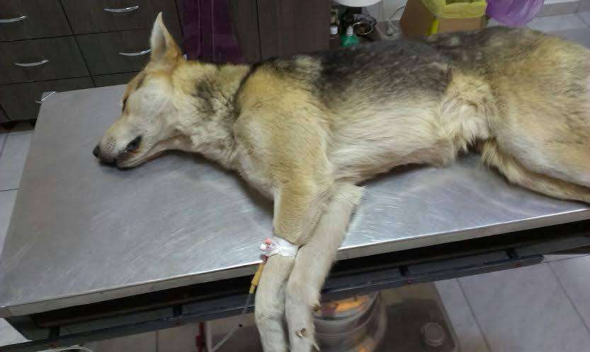 This dog was hit head on by a car; naturally, no one saw the license number, and worse, no one from the car cared to stop and see if they could do anything for this unfortunate soul. So that 3 days passed until we found out about him, during which time his situation worsened. He is now at the clinic, in critical state (he cannot walk), but we are hoping to save him, especially since his kind eyes begs for pity and mercy for his life.