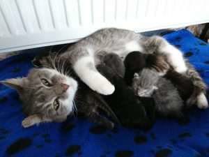 That would have been the faith of these souls. A desperate mother who hid inside a cellar to give birth, safe from the dangers of the street…unfortunately, the poeple living in that apartment building were not pleased and were preparing to cast out the mother and babies (to say the least). A little mother who was lucky to be saved and is now in the APAM Sanctuary…we are waiting for the babies to grow, after which the mother will be spayed and they will all be up for adoption.