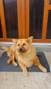 How Dora came to be adopted by me: about 14 years ago I was helping an animal lover from Bucharest to buy food for her pets and for other souls who lived on the streets, fields were hungry waiting for a handful of grains.  One day she sent me a video of a little puppy crying because she couldn’t reach the food, she was probably hit by the car and left there, unable to move.  I asked her to look for a vet clinic and take her there urgently.  The baby was a few months old, following a strong blow, had a cracked spine.  After many surgeries and rods inserted inside, she managed to take her first steps.  We paid all the costs and organized her transport to us and that’s how Dora arrived in our sanctuary.  Needing a lot of attention and recovery, she was with me all the time and happy that she has her family.  From then until today she is my soul dog, often you can’t enter the house because she stands on the threshold.  She’s a big dog, it’s harder to move and get up, but she also knows how to run after cats… luckily she can’t catch them.  Unfortunately for about 3 years she has developed several chronic diseases, she receives adequate food and treatment and I hope she has many more years to come…I can’t imagine life without her.