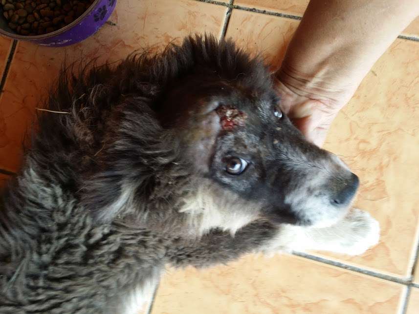 This is what we suspect, that he was hit in the head. Unfortunately, we can’t tell with certainty, since we rely on investigations among the people around, and the verdict of the vets. Most certainly, the poor animal knows best, as he is waiting to be saved, to be given a chance to heal. Sadly, this means high costs, long-term treatment. People pass him by, unwilling to concern themselves with such an issue on a Saturday. The dog was close to a beach where everyone was heading for entertainment, and this wounded little dog did not fit into the scenery; one prefers to move on and pretend not to see him. However, one person did call us very concerned, in order to ask for help, so the poor soul was lucky (if we can call it that). He is now at the veterinary clinic, for treatment for his wound and other investigations. Since it is a blow to the head, it could have other repercussions, as well. We ask you to please be with us, so that together we can pay for all the costs for saving this little soul. Thank you.