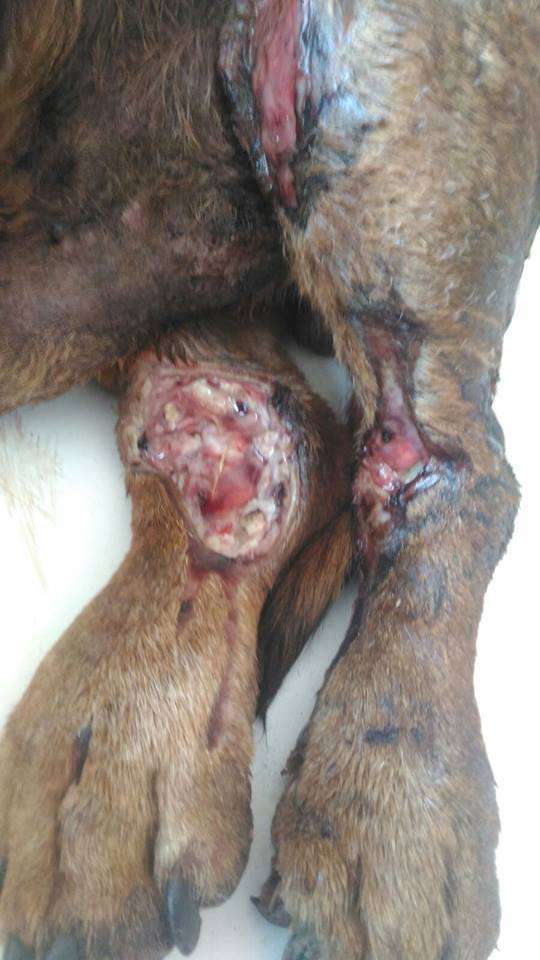 SOS! A dog lies full of wounds!